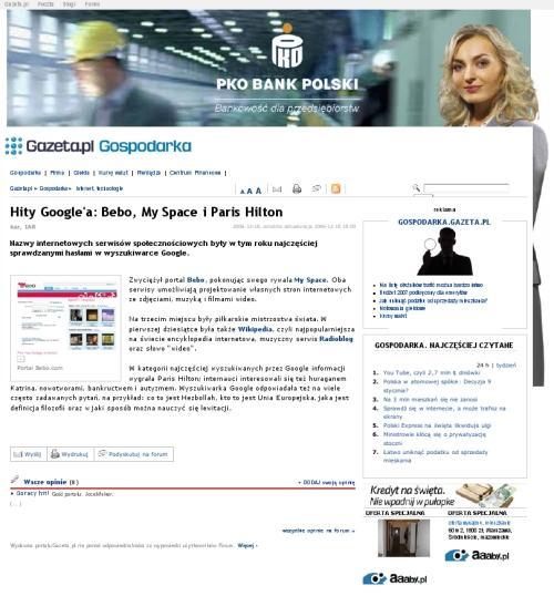 Byłem w szoku gdy kliknąłem link do artykułu z czytnika RSS, a oto ładuje mi się strona jak na zrzucie obok…. Przez moment zwątpiłem czy to jest strona portalu gazeta.pl czy może przez przypadek dostałem się na stronę banku PKO…