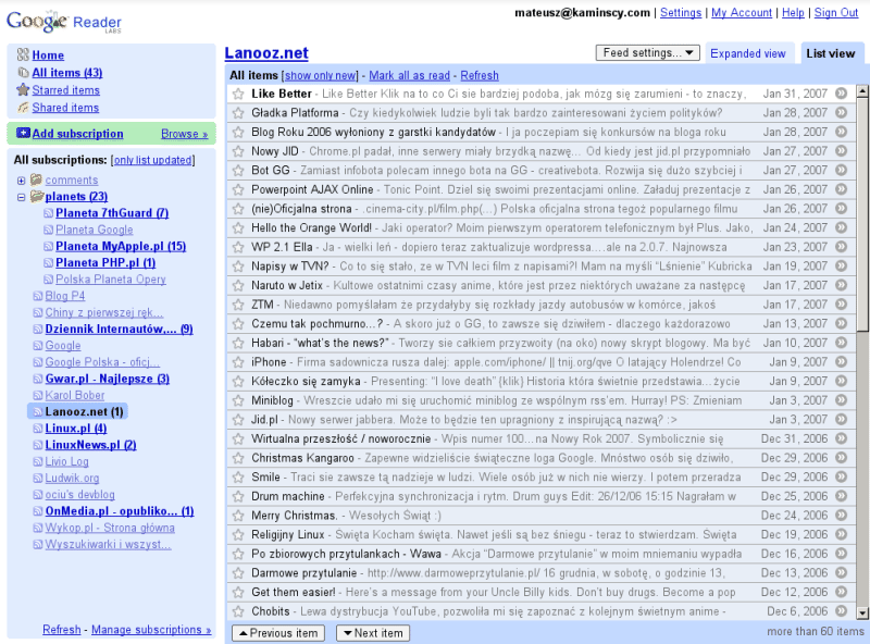 Postanowiłem dzisiaj zareklamować Wam przeglądarkowy czytnik RSS-ów w różnej postaci – Google Reader.