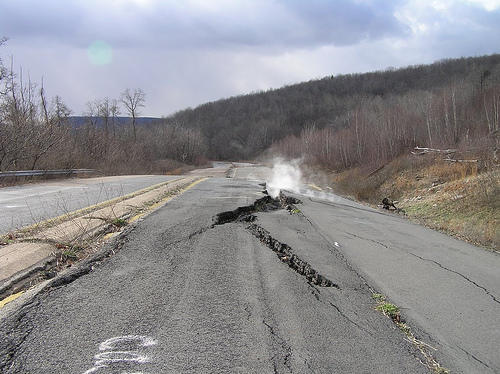 W 1962 roku niewielka ilość ognia dotarła do żył węgla w kopalni pod miastem Centralia (Pensylwania, USA).