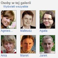 Efektem końcowym są chmurki a’la flickr, oraz lista TOP osób w galerii (po lewej widać z albumu Rodzinnego).